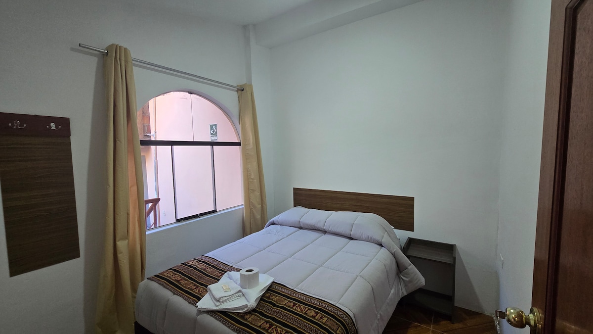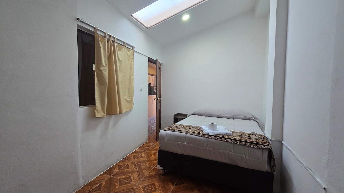 Bonito departamento con detalles de nuestra cultura andina y lo moderno, ubicado en el tercer piso cuenta con camas super cómodas. La distribución es de 1 minidepartamento con una cama Queen, que además tiene un sofa cama en caso haya un niño, y 1 habitación matrimonial con baño privado que esta a lado del mini departamento ( se conecta por el pasillo).