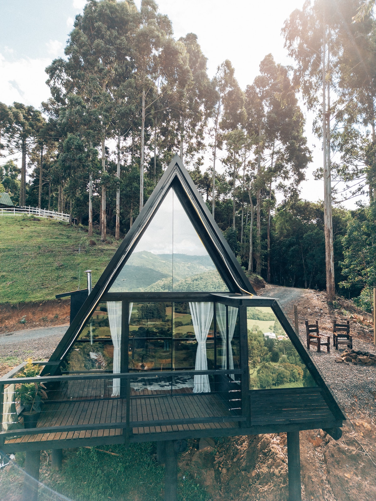 Refugie-se em um loft de madeira nas montanhas de Urubici, cercado por natureza, silêncio e uma vista marcante. Perfeito para casais, o espaço une conforto, privacidade e um clima acolhedor. O destaque é a banheira com vista para a mata, ideal para relaxar ao pôr do sol ou sob o céu estrelado da serra. O loft tem ambiente integrado, decoração rústica sofisticada e amplas janelas que trazem a natureza para dentro. A varanda convida a desacelerar.