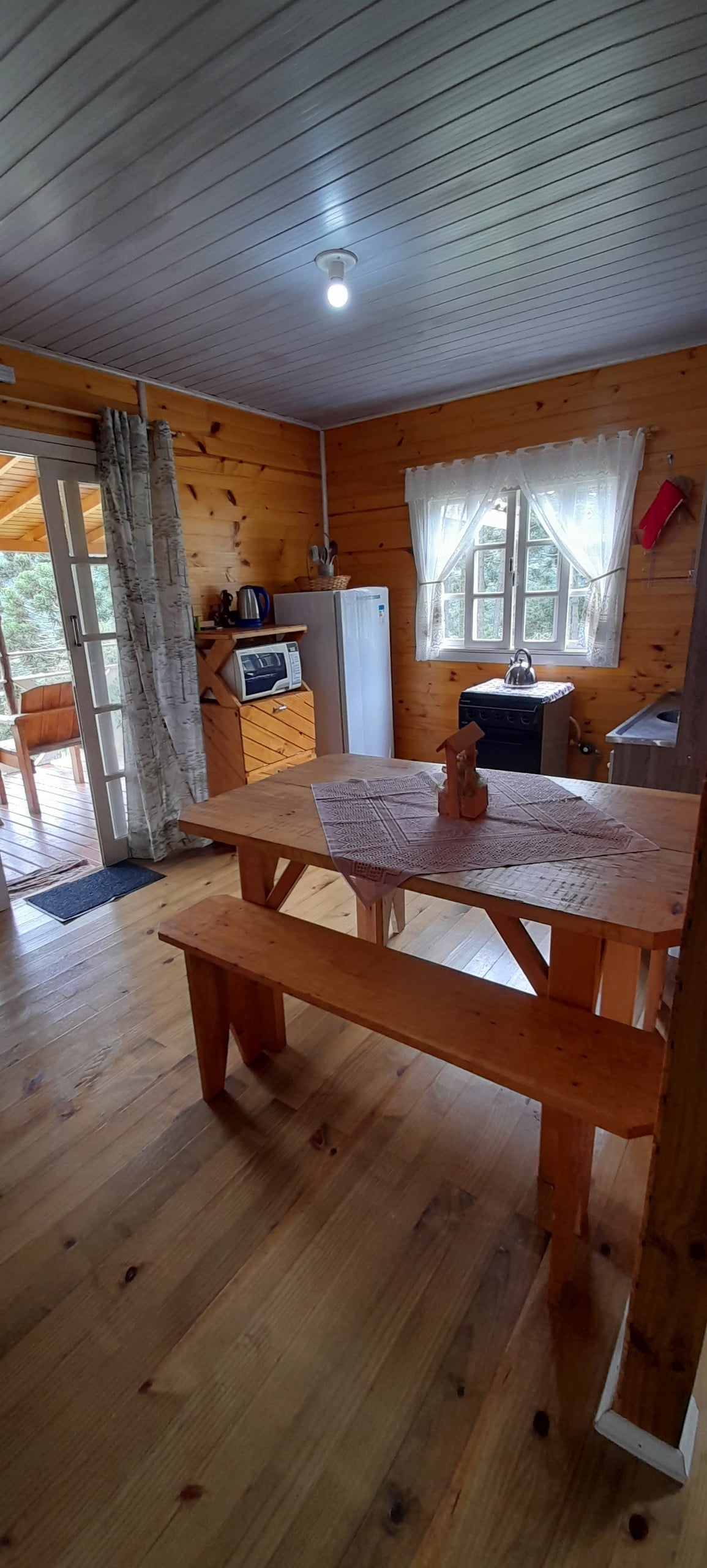 * Cabana toda equipada* * Pedimos que tragam o alimento pois a cabana fica um pouca retirada da cidade. *Quarto 1- Uma cama de casal *Quarto 2- Uma cama de casal e uma cama de solteiro. , a cabana acomoda até 6 pessoas. * Banheiro. * Deck 🌄 * Tv - internet 🛜 - Microondas - Chaleira elétrica -Fogão a lenha- Chuveiro a gás entre outros itens...