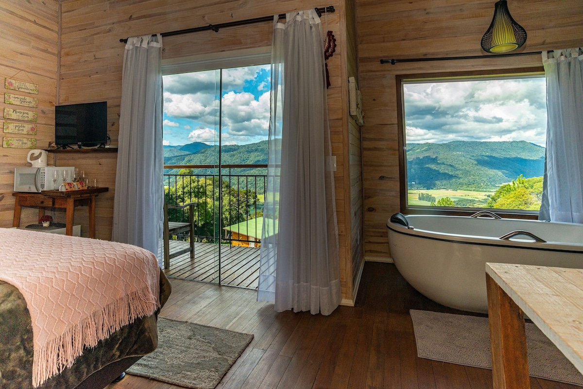 Multitemporada presents Cabanas Três Marias, at the privileged Pousada Rio Túnel in Grão-Pará/SC. A cozy and pleasant space, with a special breakfast, perfect for couples looking for comfort and an experience with nature. The property stands out for its location and view, being in a mountainous region (serra), pleasant climate, surrounded by nature and with an exuberant landscape for the Serra do Corvo Branco.