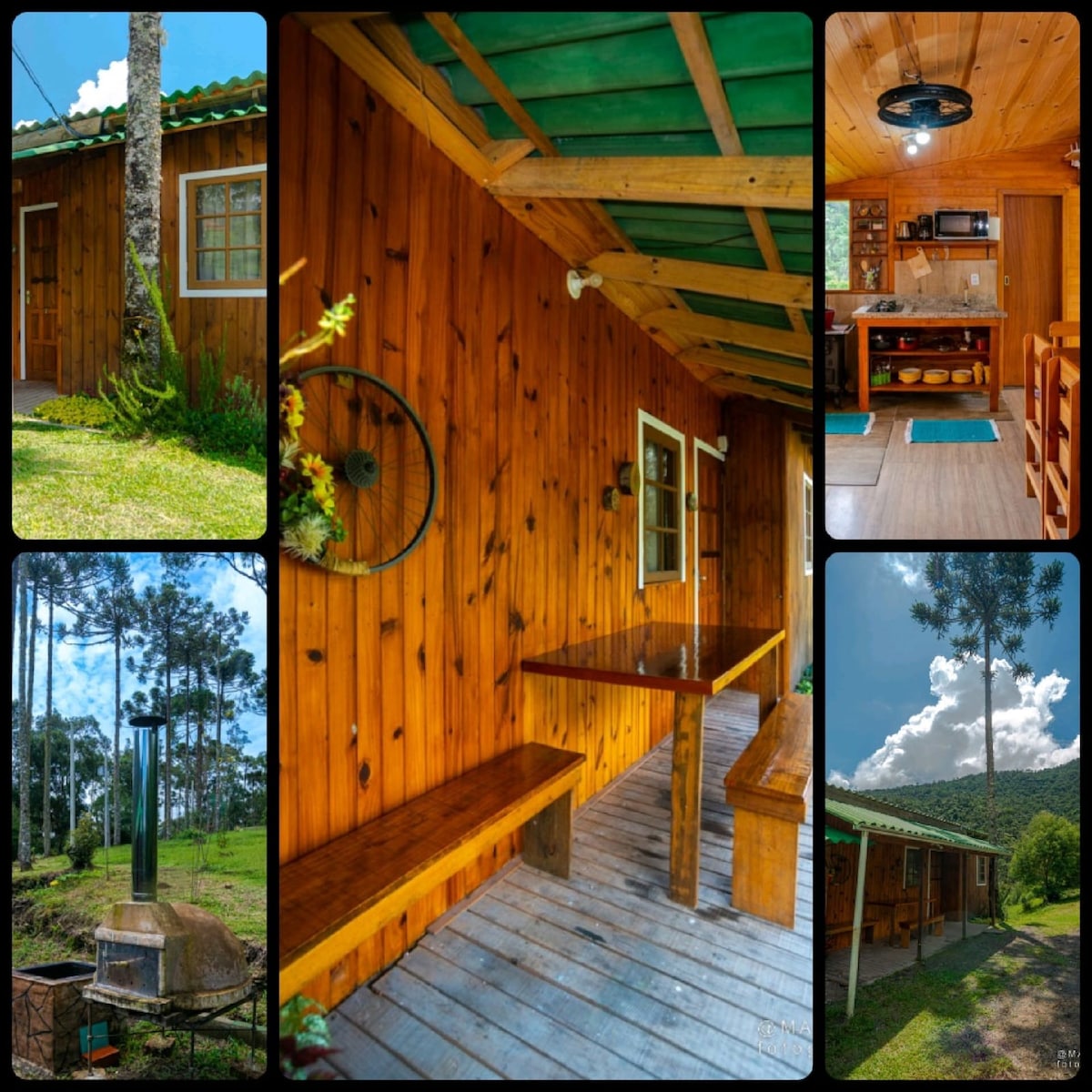 É um chalé rústico, confortável e aconchegante para duas pessoas, eventualmente acompanhadas de uma criança ou pessoa jovem. Tem sala, cozinha e banheiro. O quarto de dormir (colchão Ema novíssimo) fica no mezanino. Um deck em torno do chalé completa o espaço, rodeado de verde da floresta de araucária e do jardim. Para conviver com o frio existe um calefator a lenha. Existe outra casa no terreno. O lugar fica a 10km da Esquina de Urubici, ou a 8,5 km do portal do Caminhos da Colônia.