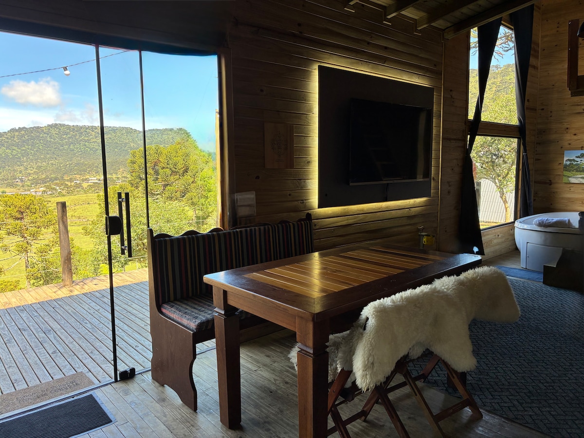 Viva momentos inesquecíveis neste lugar único e ideal para casais e famílias, localizado no Morro da Igreja, em contato com a natureza com uma altitude aproximada de 1500 metros e com uma vista deslumbrante para o vale, vista ideal para suas postagens e streaming Nosso chalé foi projetado para trazer Conforto, luxo e Privacidade para nossos hóspedes, com toque romântico e moderno. Com banheira de Hidromassagem com cromoterapia de frente pro vale, e uma jacuzzi no deck, todos aquecidos a gás.