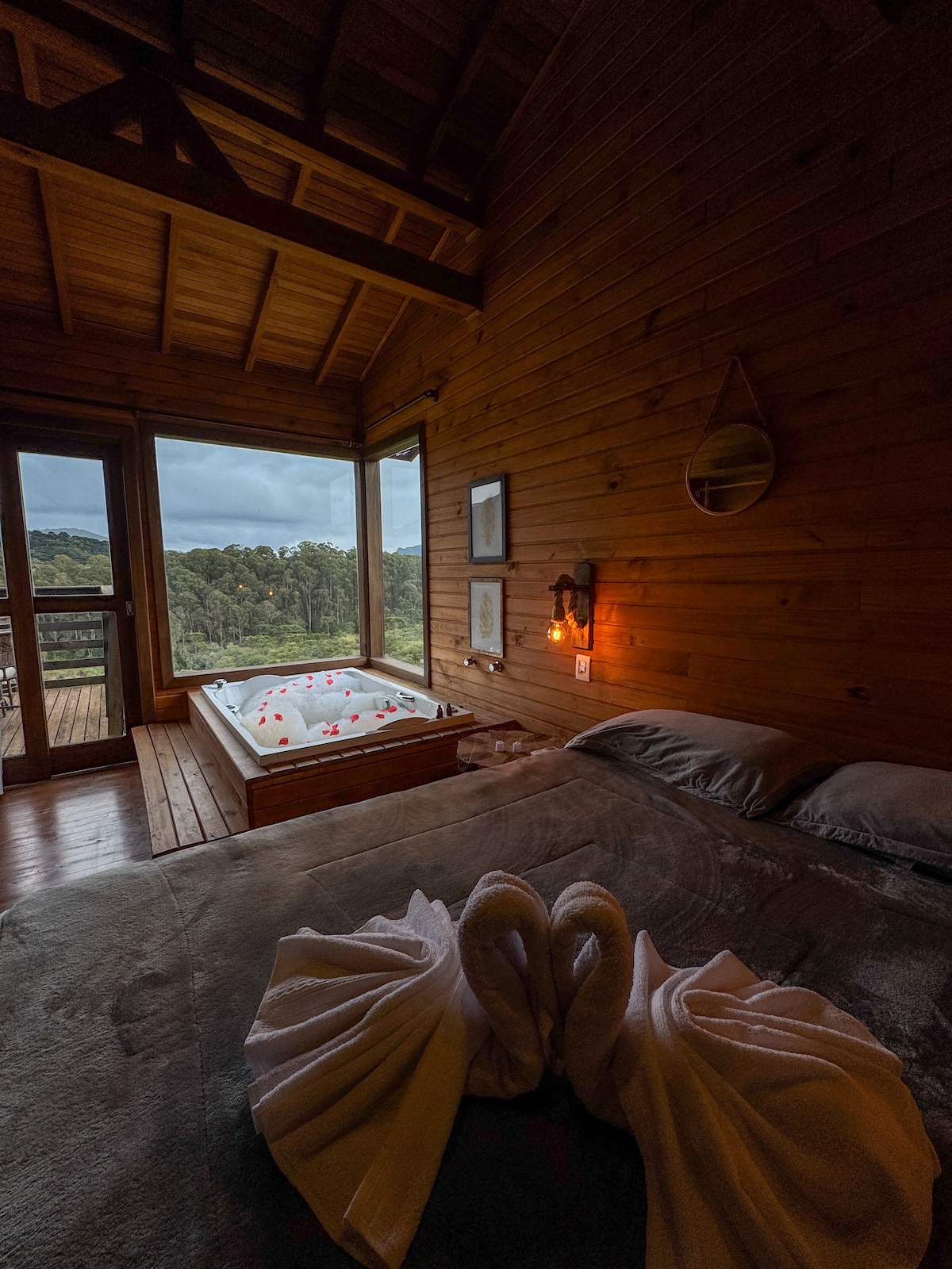 O melhor de uma Pousada e de uma Cabana em um só lugar. Desfrute do conforto de uma pousada na serra com a privacidade de uma cabana só para você e sua família. Cabana 100% equipada e com serviço diário de limpeza. Conforto e tranquilidade. O condomínio é belíssimo, com área para piqueniques, churrasco, praça de fogo de chão, uma linda piscina natural e estacionamento, além de estar a 10min do centro de Urubici e próximo dos principais pontos turísticos.