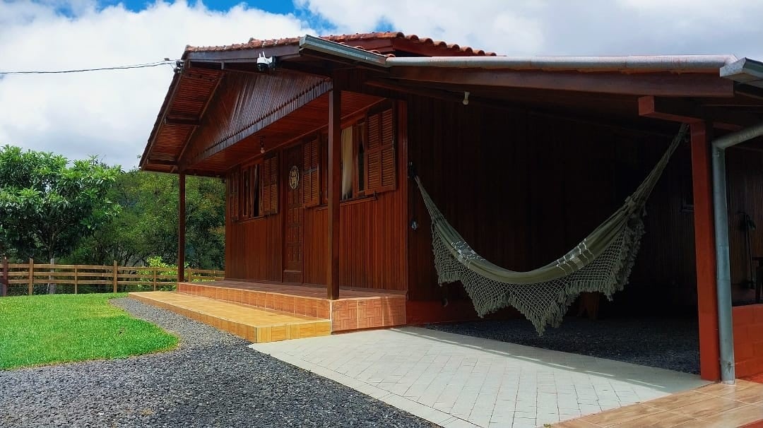 Cabana para casal com estilo simples rústico, em meio a natureza que nos agracia com um rio que garante aos visitantes dormir ouvindo o barulho da água e pela manhã acordar ouvindo o cantar dos pássaros e também podem contemplar uma pequena cachoeira. Para a comodidade e conforto, existe uma cozinha com utensílios básicos de cozinha, bancada e um sofá em frente ao calefator para aquecer nos dias mais frios.