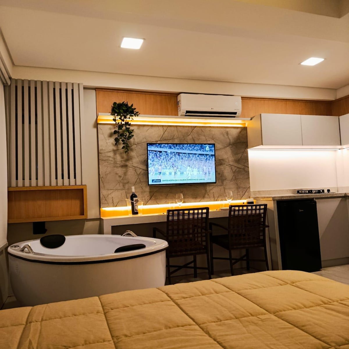 Studio moderno e aconchegante no centro de Urubici! O espaço oferece conforto, praticidade e uma ótima localização, ideal para viagens a lazer ou trabalho. Perfeito para casais que buscam clima romântico sem abrir mão da praticidade da cidade na Serra Catarinense. Ambiente bem equipado. Mercado e farmácia a 150m e restaurantes na região. Estacionamento próprio, lavanderia exclusiva para o prédio, acesso por biometria facial e fechadura eletrônica para mais segurança e praticidade.