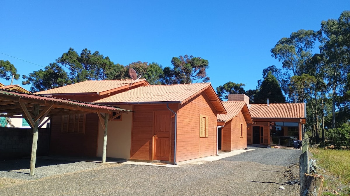 Casa FAMILIAR de altissimo padrão, a 5 min da cidade de Urubici! Casa com 2 suítes e banheira em ambos os banheiros, sala grande, lavanderia e sacada com vista para os caniôns e cidade de Urubici. Cada quarto tem uma cama king e em baixo uma bicama de tamanho queen! Possui: roupa de cama, toalhas, travesseiros A casa fica a 500m de distancia dos locais turísticos como cachoeira do Avencal, Papuã e Guardião do Avencal. Tudo por asfalto