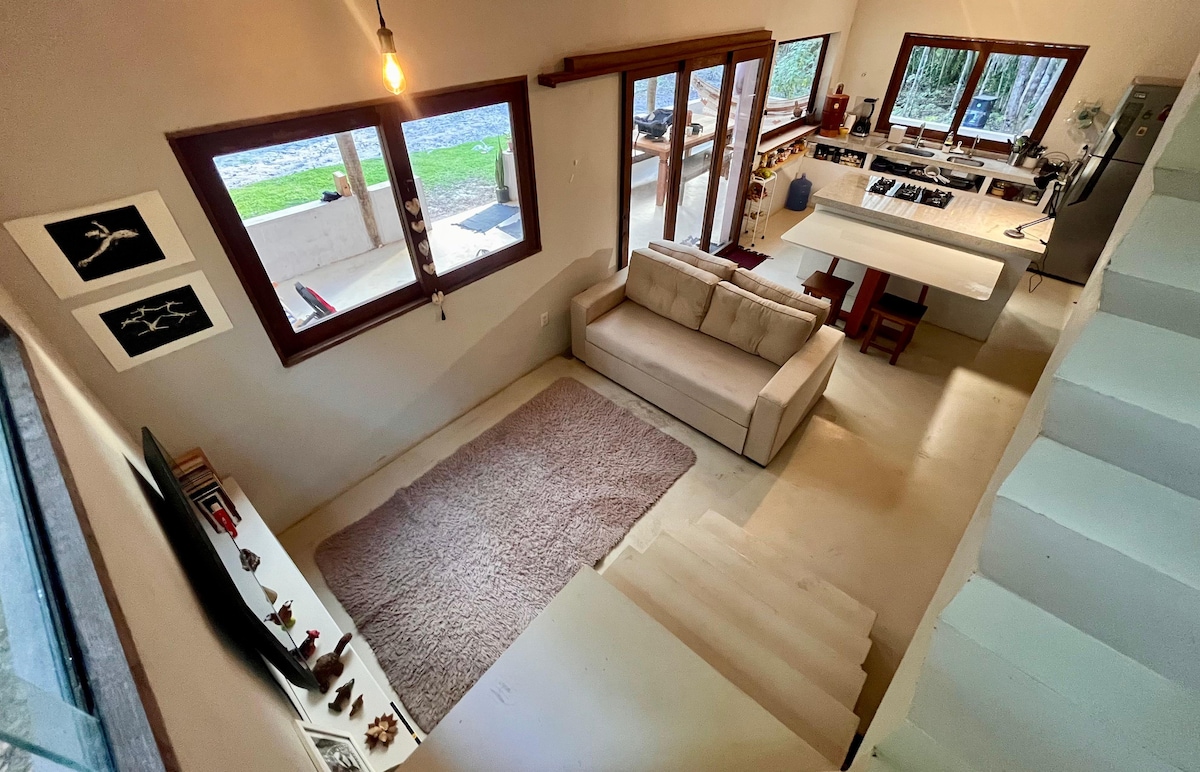 A Cabana foi construída com técnicas de bioconstruções, entao é um ambiente vivo! Cantinho para atividades holísticas, terapêuticas e vivencias relaxantes. Ideal para quem busca desfrutar de momentos íntimos e pessoais. Está localizada em uma região encantadora, com reservas naturais, lindas praia e cachoeiras e um povo criativo. Encontros culturais e artísticos acontecem por aqui: Feirinha Saberes e Sabores; Sarau Serra Viva; Festival de Arte e Gastronomia e o Blue e Jazz Festival de Serra.