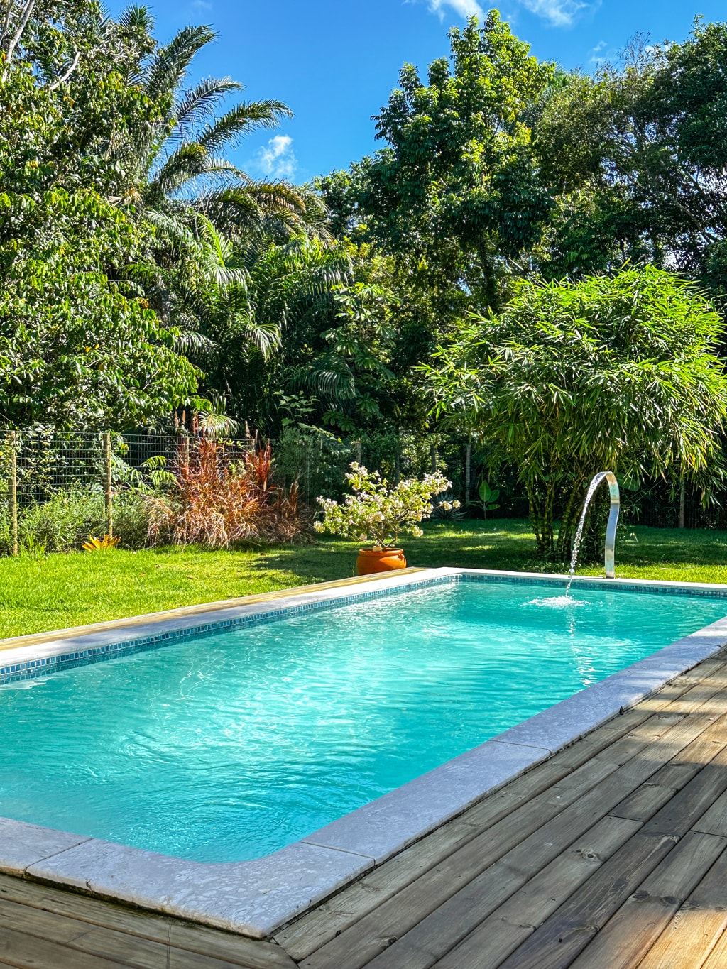 Vila Pitangueira has 4 comfortable and airy accommodations, located 50 m from Serra Grande square, next to the beach. of markets and restaurants. In the common area there is a swimming pool and on the shared terrace a heated hot tub overlooking the forest. In the garden you can find our curious kittens and in the limited area of the pool we have big affectionate dogs. All this equipped with 200 thread count bedding and high speed fiber internet. Insta @vilapitangueira