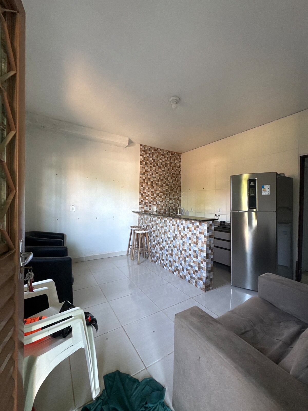 Apartamento inteiro: Para 1 pessoa pelo valor anunciado — para 2 hóspedes, o valor sofre acréscimo, conforme as regras da hospedagem. ✨ O espaço oferece: • ❄️ Ar-condicionado, garantindo conforto em qualquer estação • 📶 Wi-Fi de qualidade, ideal para trabalho ou lazer • 🚗 Estacionamento disponível • 🧺 Máquina de lavar • 🧊 Cozinha compacta, equipada com geladeira ⚠️ Obs.: não dispõe de fogão. ❌ A banheira não funciona.