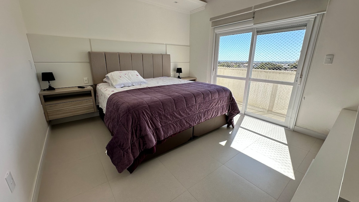 Apartamento completo, em área central da cidade Próximo à academia, farmácias, mercados, restaurantes! Possui 2 quartos, cozinha, sala, banheiro e varanda com churrasqueira. Contamos com 2 camas de casal e uma de solteiro, podendo assim hospedar até 5 pessoas. Um dos quartos tem ar condicionado. O apartamento possui garagem para 1 carro. Temos Wi-Fi.