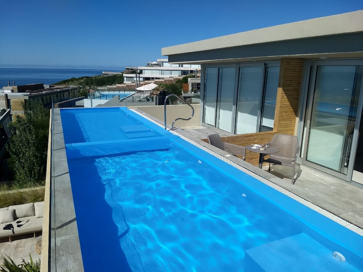 Espectacular apartamento en Punta Ballena en primera linea del mar. Al lado de Casa Pueblo, casa y Museo del artista Carlos Páez Vilaró . Cuenta con 2 dormitorios en suite, cocina y comedor integrados, living y una amplia terraza. Aire acondicionado y persianas automáticas. Sábanas, toallas, sillas de playa y sombrilla incluidas. Servicio de mucama opcional con costo extra. Bicicletas opcionales con costo extra.