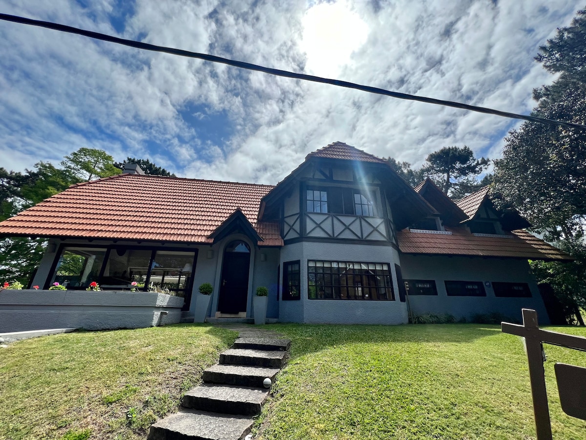 No coração de um dos bairros mais tradicionais de Punta del este - Uruguai, uma confortável casa com um entorno de jardins e pinhos. Amplo jardim de 1000 metros quadrados, bem cuidado, iluminado e com um maravilhoso frente para desfrutar do ambiente