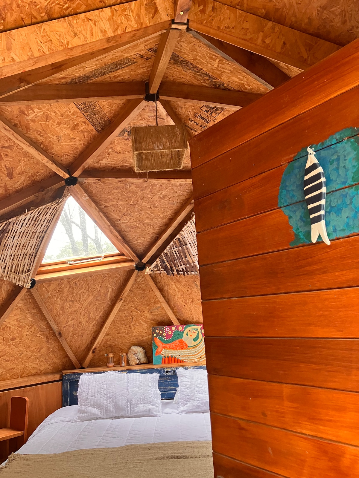 Para quienes buscan de la vida al aire libre, el domo cuenta con un deck de madera con hamacas y sillones, ideal para relajarse bajo el sol o disfrutar de las noches estrelladas junto al fogón. Ubicado a 500 metros de una de las mejores playas de la zona. El interior está totalmente equipado, podrás cocinarte como si estuvieses en tu casa. La ropa de cama y de baño está incluida.