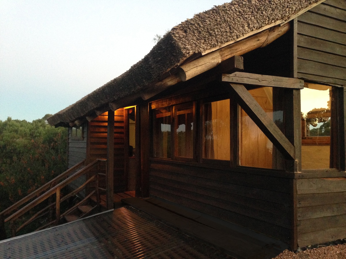 Alojamiento en el campo a 20 minutos a pié del centro de Valizas. Cabaña construida con materiales naturales (barro, madera, paja) de 36 m², con baño privado y cocina totalmente equipada, para 2 personas. La habitación, equipada con excelentes colchones de alta densidad, es configurable en formato de cama matrimonial king o 2 camas twin. Deck exterior con vista a increibles atardeceres contra el bañado y la sierra.