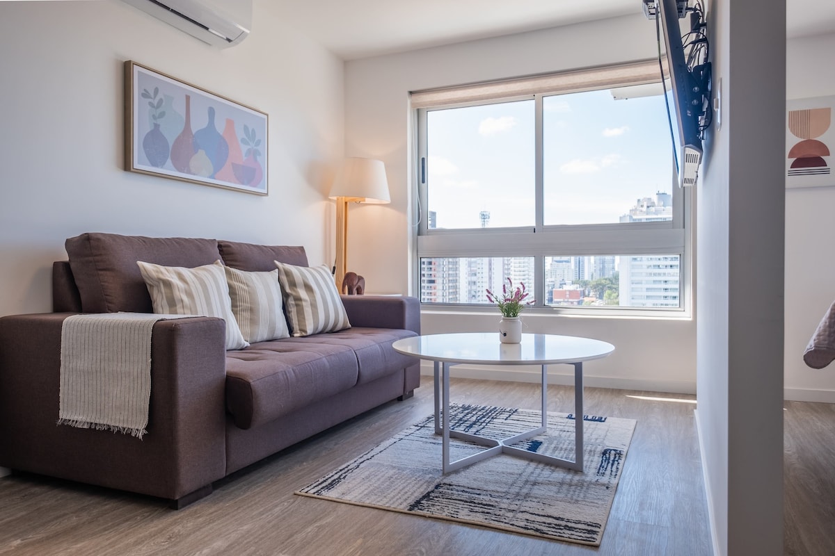 Está ubicado en una de las zonas más exclusivas de Montevideo, con todos los servicios, restaurantes, supermercados, shopping center, la rambla de Montevideo y transporte a solo unos pasos También contamos con piscina, gimnasio y microcine, todo para hacer de tu estadía una experiencia especial