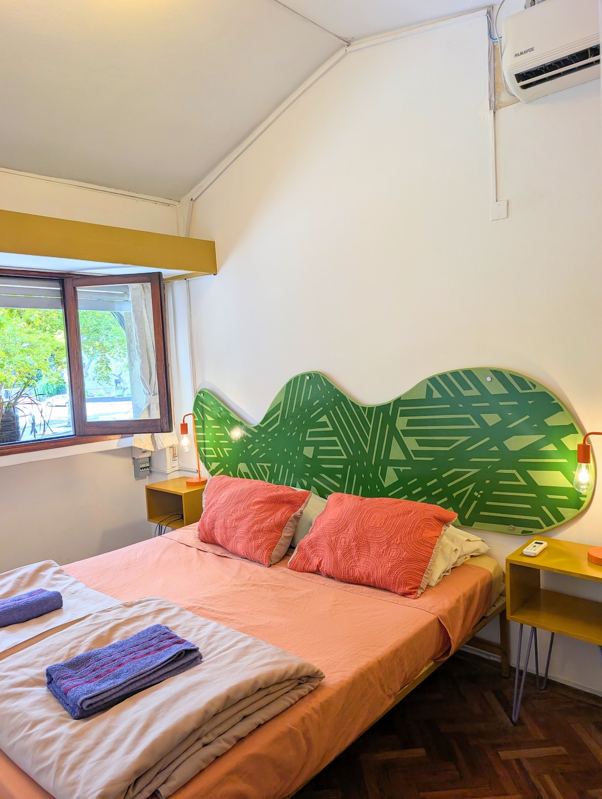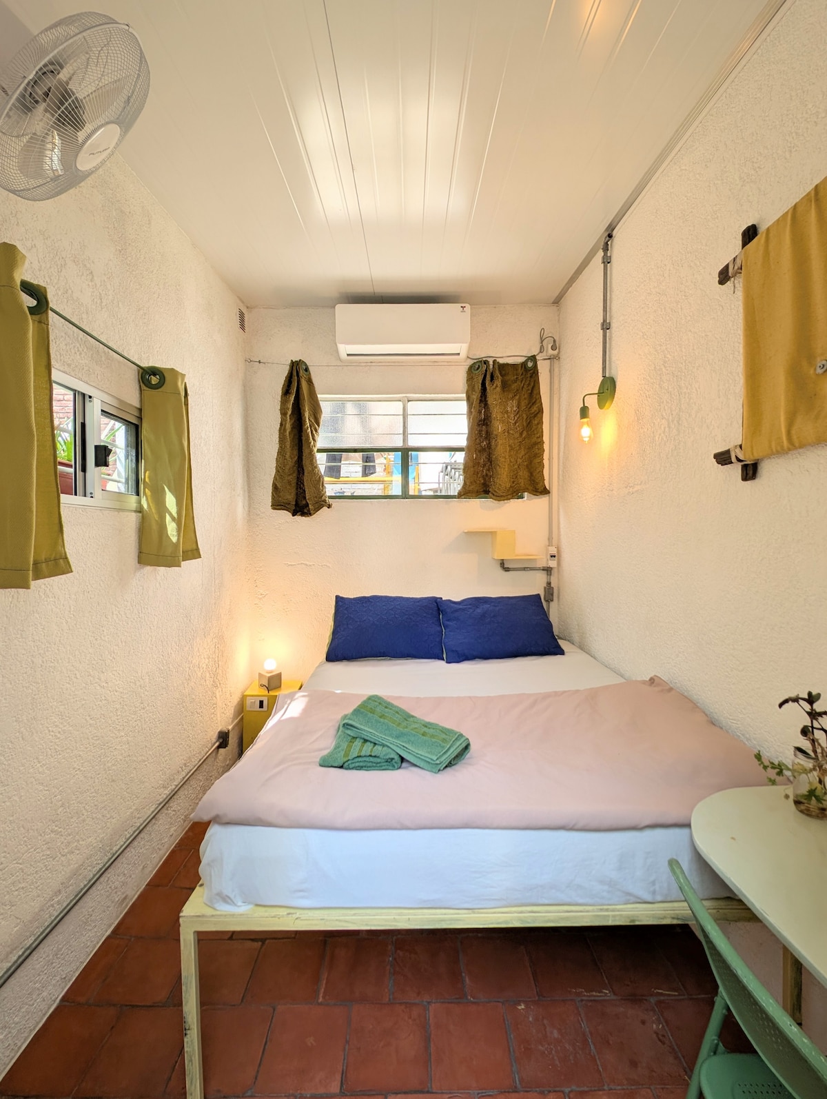 Cómoda y luminosa, ideal para parejas o dos personas. Cuenta con baño privado, aire acondicionado, cama matrimonial, ropa de cama incluida. Una opción tranquila y práctica, a pasos del mar