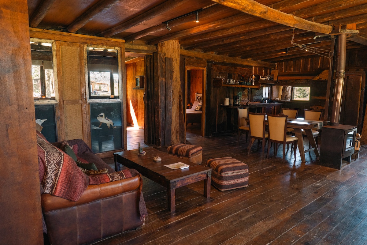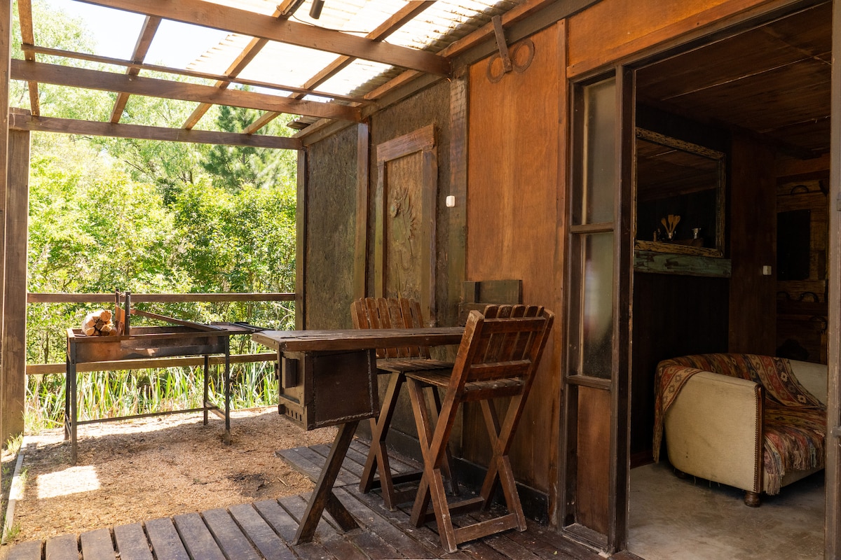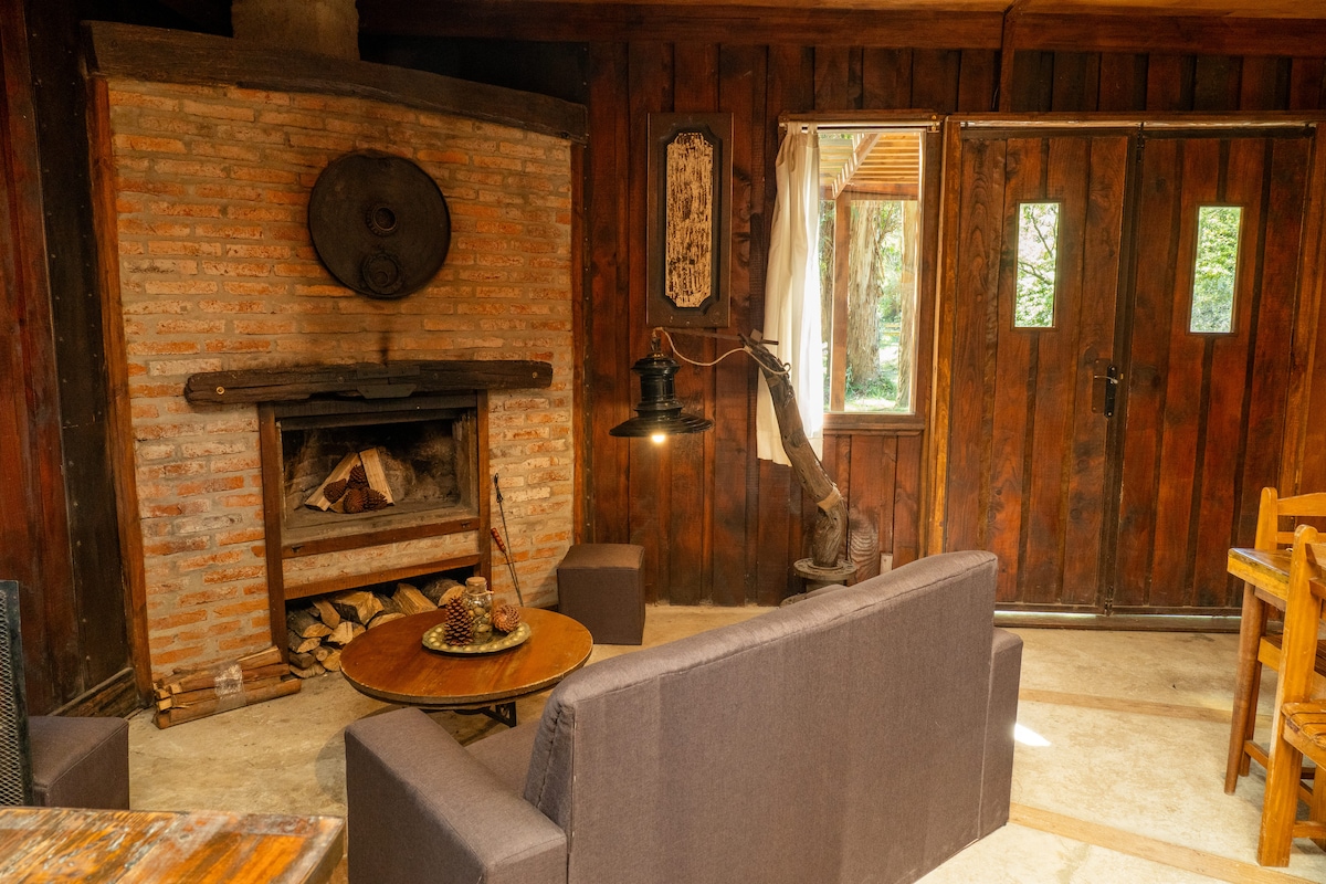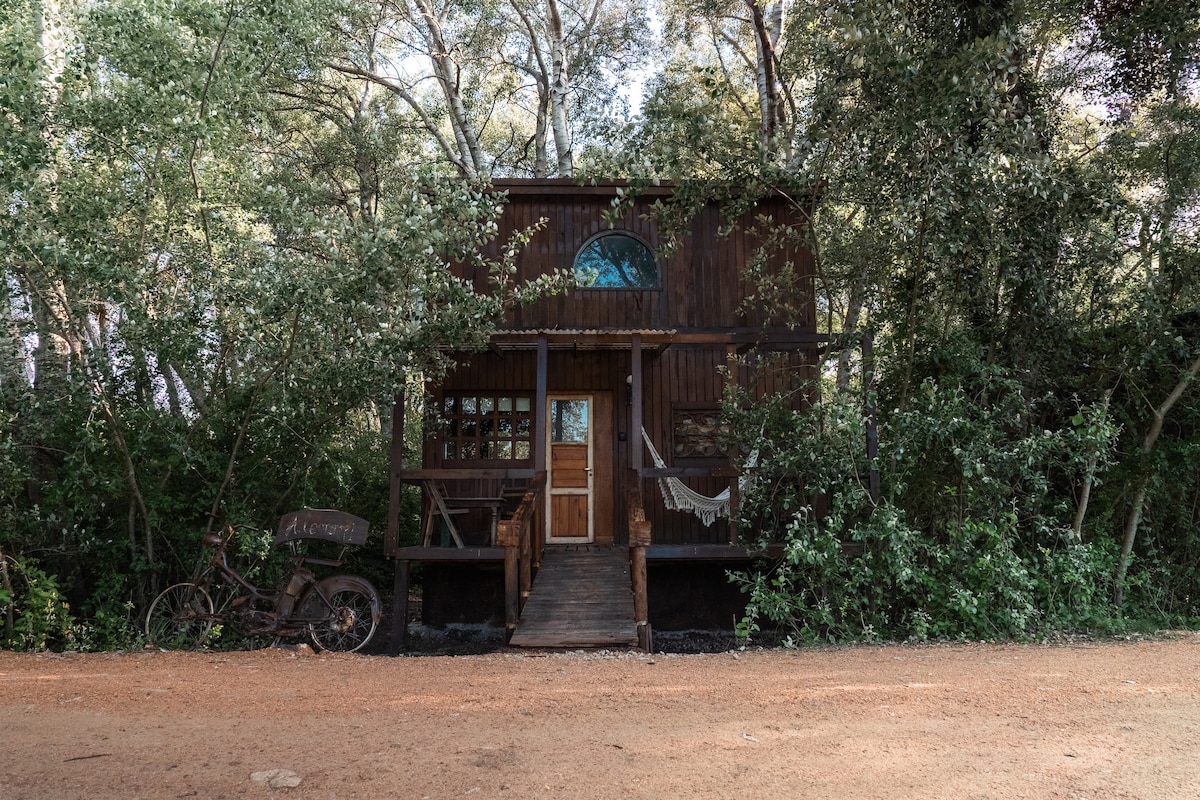 El entorno de la cabaña es un lugar único en Uruguay. Con un arroyo que cruza por debajo, el sonido del agua y las vistas a las sierras, los montes autóctonos, la fauna del lugar, hacen de éste un único entorno de tranquilidad y belleza extrema.