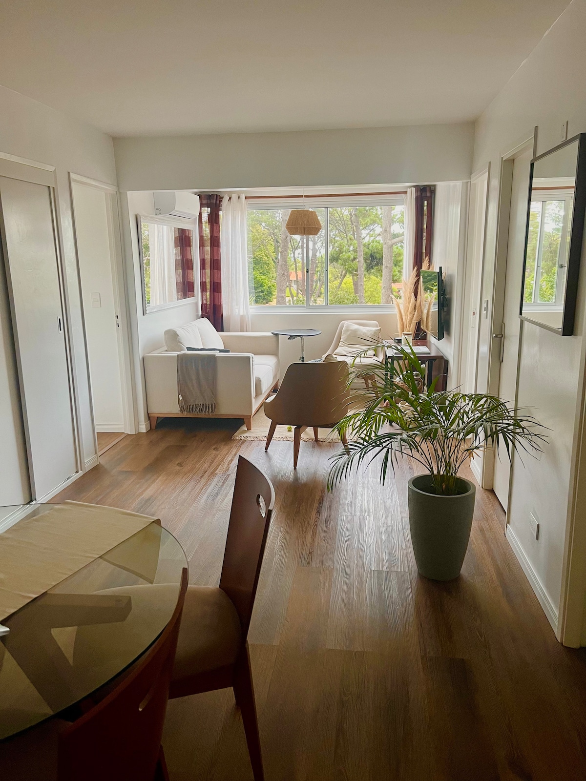 Apartamento de un dormitorio a metros de Playa Mansa y frente al Hotel Enjoy. Muy luminoso, con linda vista a la Playa mansa y todas las comodidades. Wifi , TV Cable, Servicio de mucama diario. Garage propio y lavadero. Muy lindo decorado y completamente equipado. TVs y aire acondicionado en los 2 ambientes. El edificio tiene seguridad 24 hs y cuenta con amenities de calidad: piscina exterior climatizada, gimnasio, sauna, barbacoa con amplia terraza con vistas a la Bahia. Próximo a Gorlero