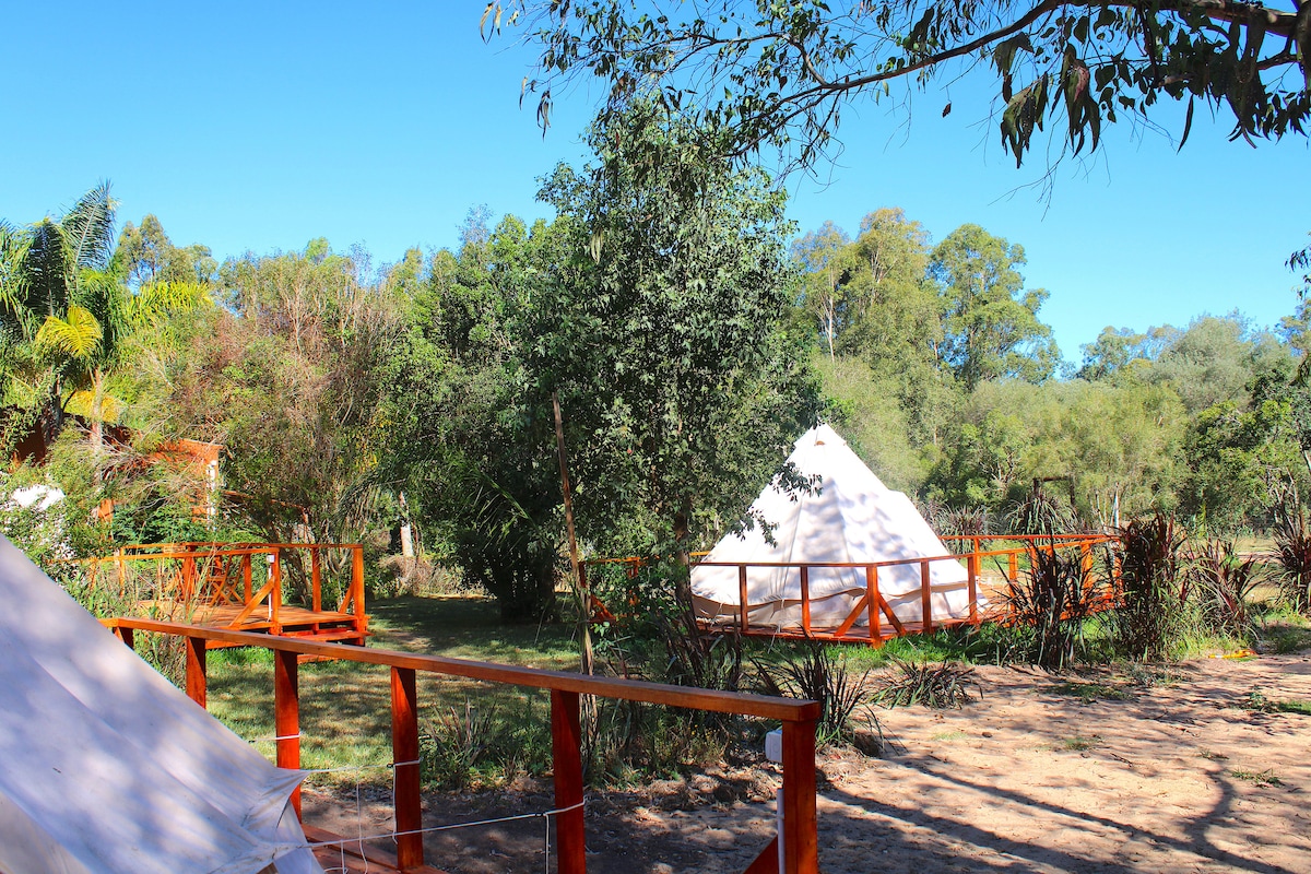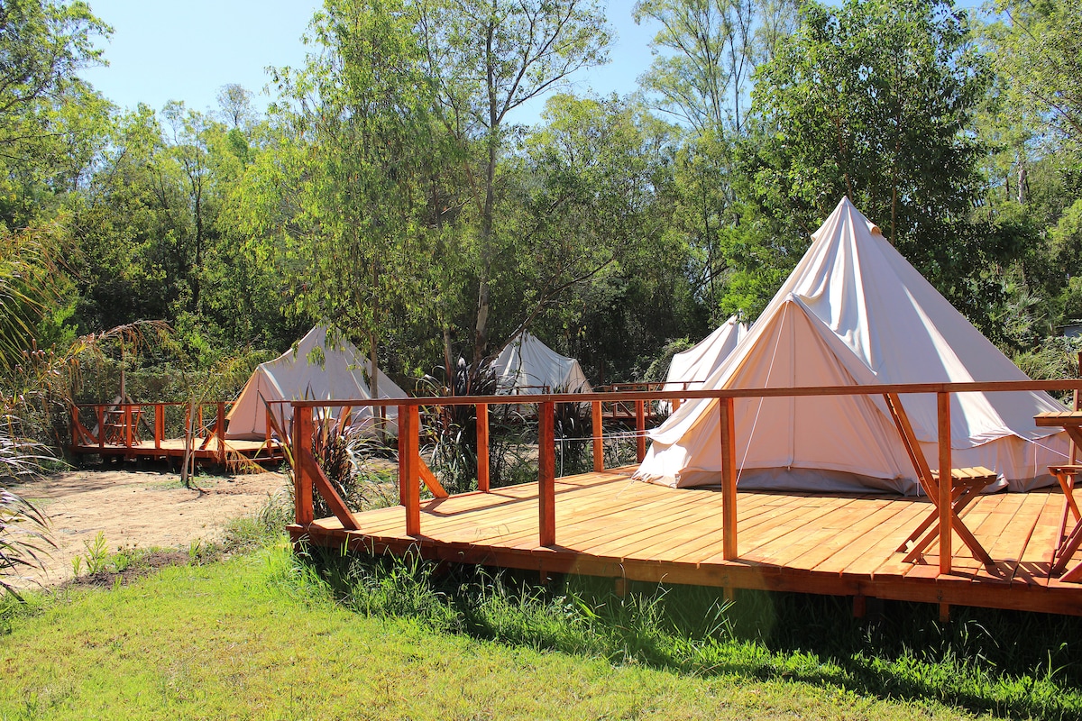 Disfruta de una experiencia única, en un lugar mágico 100%. Viví la experiencia GLAMPING, acampar con glamour y confort como nunca te imaginaste. Regenerarte, respira aire puro. Estamos ubicados en Laguna Garzón (Área Protegida en Uruguay), Naturaleza Plena! La carpa cuentan con baño privado, cama de dos plazas, luz eléctrica, muebles, tollas, sabanas, bicicletas y desayuno. Todo pensado para que te relajes y disfrutes. Estamos a 15 minutos de Jose Ignacio. Ideal para sorprender a tu pareja.