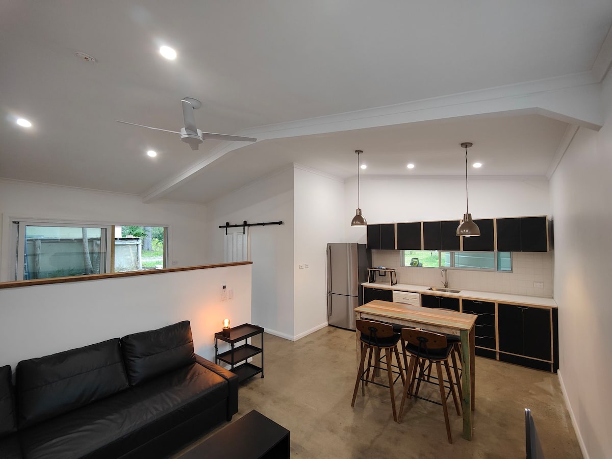 The Nutty Bungalow is an elegantly fitted out space and on an organic Macadamia nut farm.. strolling distance to long quiet beaches. .. a place of peace and simplicity and comfort... whatever the weather or season or reason. Open fireplace with wood provided for snuggly nights. Big, huge smart TV ... On the same property as my house but private with an orchard in between & far enough that noise doesn’t travel between at all. Dogs are welcome if they've been discussed & the dog rules agreed to..
