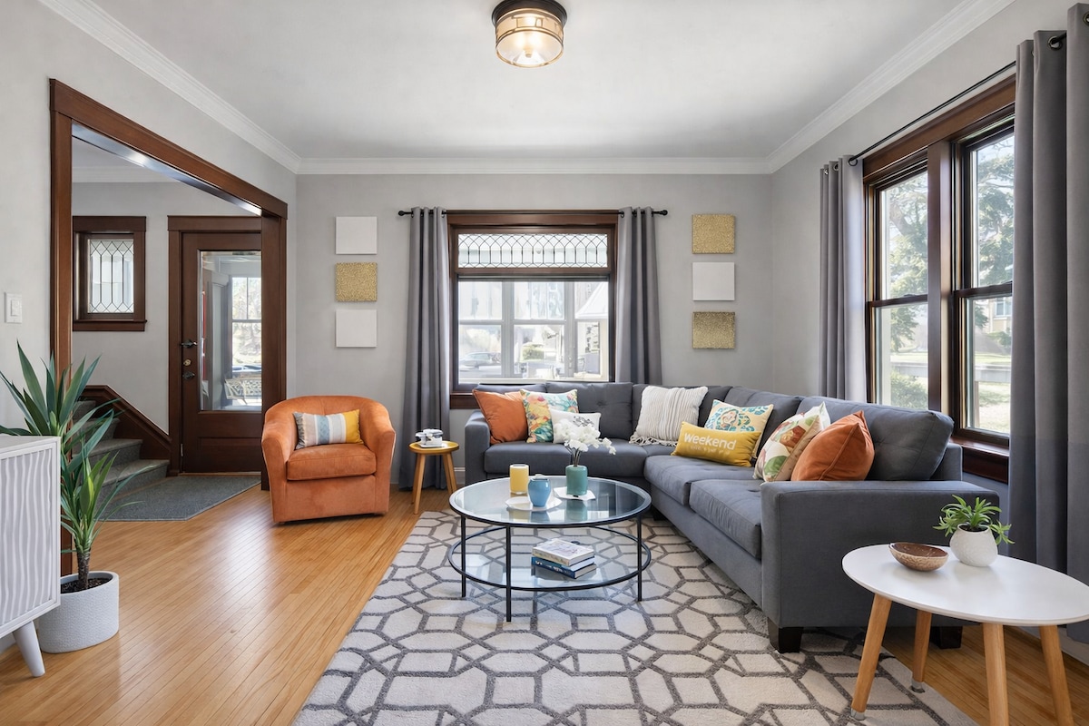 Welcome to your urban oasis in Minneapolis! This stylish 3-bedroom retreat boasts modern charm, a well-appointed workspace, and TVs in every room for ultimate relaxation. With 2 convenient parking spaces and a prime location, you're just minutes away from the city's vibrant pulse. Ideal for both business and leisure travelers, this home ensures comfort and convenience. Book now for an unforgettable Twin Cities experience! Please note this is a non-functioning fireplace at this time.