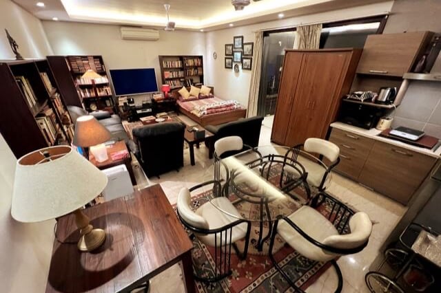 Located in Neeti Bagh (a premier residential locality in Delhi), this independent unit is a 10 minute walk from the Metro station. The studio is close to monuments, restaurants, & shopping centers. It is conveniently connected to the railway station, and the airport and is surrounded by parks. There is easy access to grocery shops, pharmacy and a fitness center. It is a 15 minute drive to cultural havens such as Delhi Haat, Lodhi Gardens, and the Habitat Center.