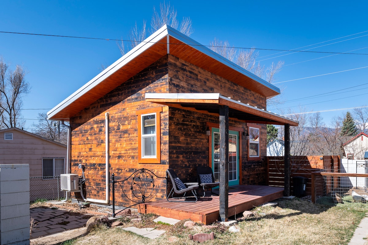 ★ " What a beautiful cottage! A lot of effort was clearly made to make this space resonate homey comfort!" ☞ Pet friendly ☞ Fully fenced backyard w/ dog door ☞ Walk, Bike or Drive 1 mile downtown ☞ 5 mins walk → Memorial Hospital, USOTC, Memorial Park ☞ Fully fenced backyard ☞ Back patio dining, charcoal BBQ, hammock ☞ SmartTV ☞ 18 mins to Garden of the Gods, C/S Airport, Manitou ☞ Fully equipped kitchen ☞ Private parking Perfectly sized for 2 guests and a kiddo. Human and/or the furry kind!