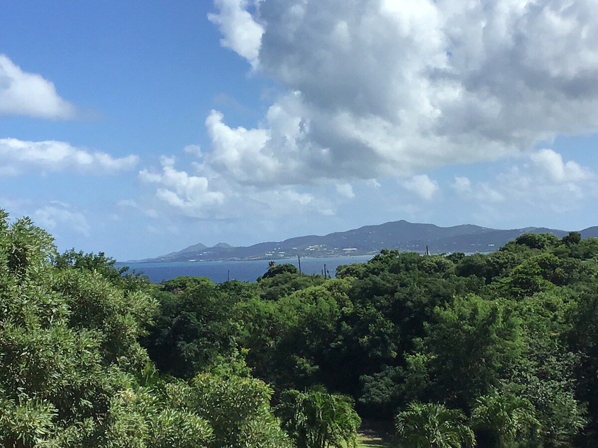 Ocean Blue Cottage located in Upper Carolina, 400' above sea level, overlooking Coral Bay harbor, Bordeaux Mt, Carolina valley and a peek of the Caribbean Sea. 23 steps down from the road, it has a bedroom 9'x12', dining/kitchen area 6'x10', bathroom 3'x10', private outdoor shower 4'x5', deck 8'x4' with grill, furniture, umbrella. Pricing is $150 night. There’s also an $90 cleaning fee per reservation. 5 min drive to restaurants, 10 min to beaches.