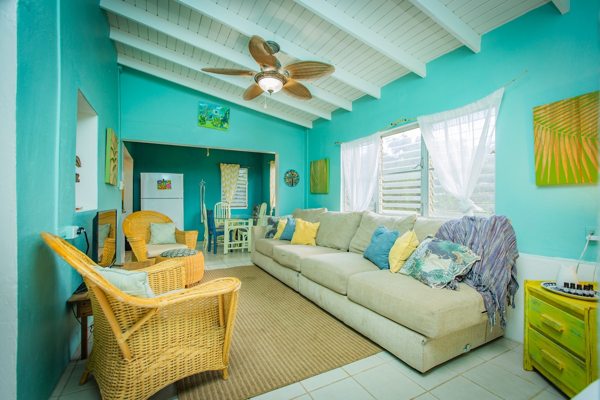 Welcome to Yellowbird, a charming freestanding one-bedroom cottage nestled among bamboo trees and palm fronds This serene retreat is the perfect spot to unwind and recharge during your vacation. Located on the Northside of St Thomas just off Upper Caret Bay road, conveniently only a short drive from the airport. Enjoy the best of both worlds on your Caribbean getaway as you head down from the tropical jungle and to the beach. Brewer's Bay & Hull Bay are both minutes away!
