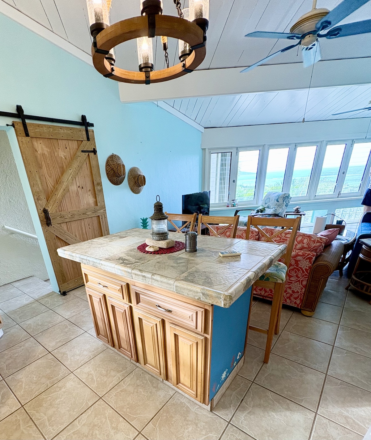 Unwind in our updated two-bedroom, beach access, gated reef condo! There are stunning views from every room and abundant natural light! Amenities include a 9-hole golf course, driving range, pickleball and tennis courts. The hilltop pool provides ocean views! Enjoy our open concept kitchen, dining, and living space. There is a private courtyard off of the kitchen and a front patio at the entrance. We are a short walk to beaches, a cafe, and restaurant. We welcome you to Jude's Treasure!