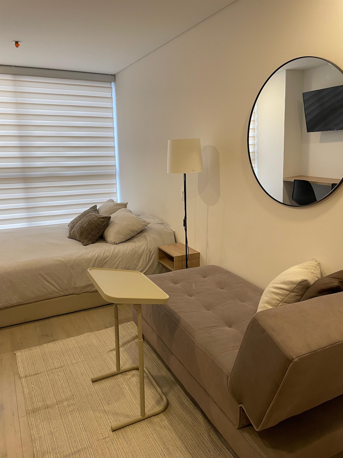 Enjoy an amazing experience with style in this brand new comfy luxury loft. Full equipped with double bed, wifi, TV, microwave, waffle maker, freezer, work desk, coffee maker, great natural light and an amazing view. Located in an exclusive city area, very close to public transportation, near some of the best restaurants & malls in the city. The building has laundry room, coworking, a 360 terrace with bbq and exercise alongside a full impressive city view, nice and helpful building personal.