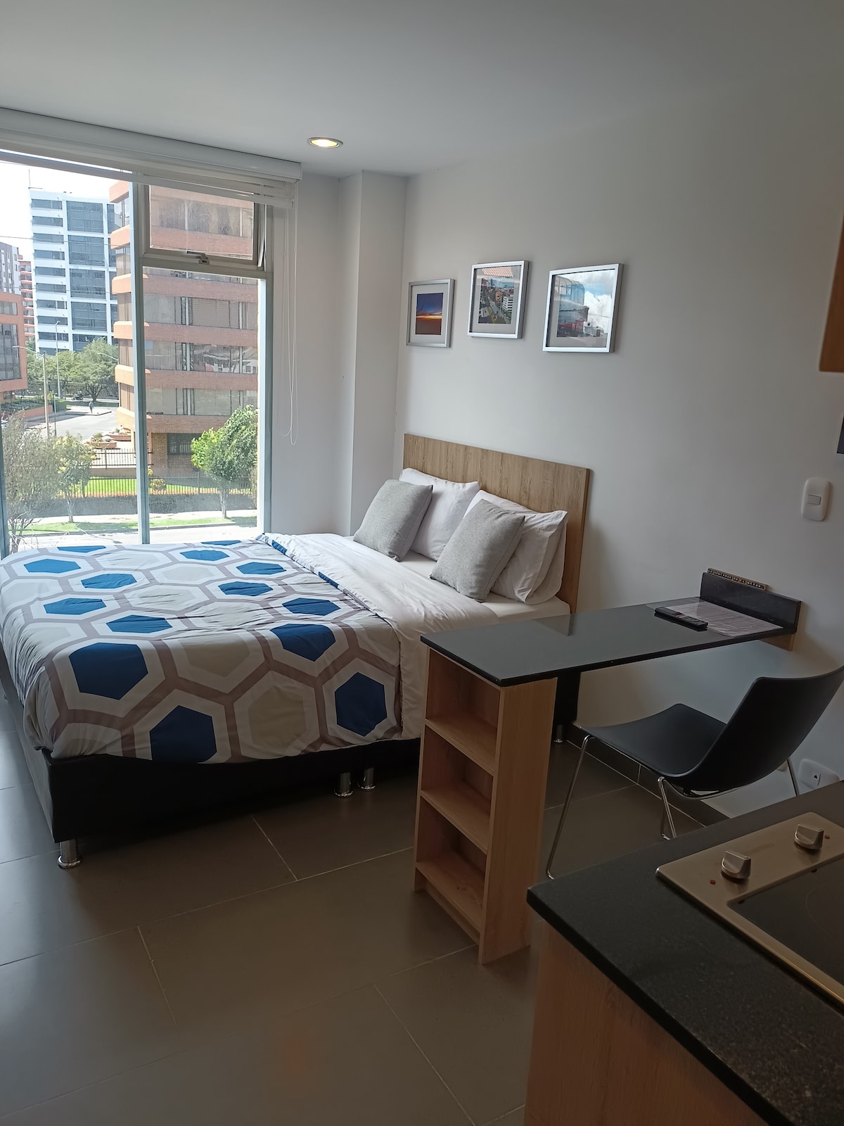 **FAVOR LEER DESCRIPCION, REGLAS Y OTROS ASPECTOS A DESTACAR ANTES DE RESERVAR**. Es un lugar limpio, agradable, cómodo y seguro. Apartaestudio moderno estilo loft, un baños 1 cama doble. Perfecto para cortas, medianas o largas estadías. A dos cuadras de Carulla Fresh Market, a una cuadra de la 100. Con porteria 24 horas, parqueadero en el edificio, gimnasio y un salón de negocios con internet para que pueda tener reuniones de trabajo.