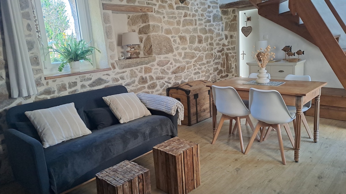 The house has a ground floor (living / dining room, kitchen, shower room / wc) and a bedroom upstairs. It is ideal for two people, a stone's throw from the north coast. For a baby or a young child: bed, park, high chair. A second couple can be accommodated (sofa bed on the ground floor). A veranda allows to lunch outside in the shelter of the wind ... In period of fishing, fish is offered.