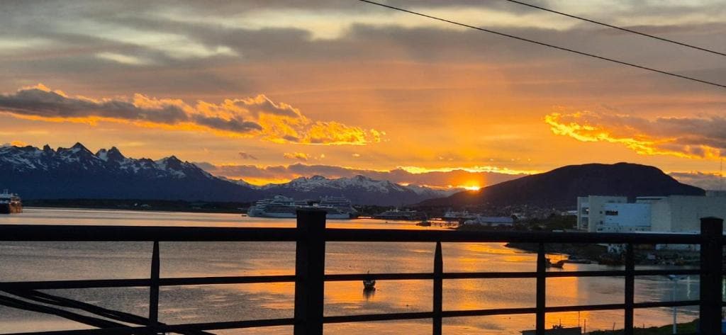 Welcome Guests! Central location Balcony overlooking the port of Ushuaia, Beagle Channel and Mountains. Two bathrooms. Fully equipped for 6 people. (Up to 2 extra guests) Safe in the master room. Self-Service Breakfast. Bienvenidos Huéspedes! Ubicación céntrica. Balcón con vista al puerto de Ushuaia, Canal de Beagle y Montañas. Dos baños. Equipado completamente para 6 personas. (Hasta 2 huéspedes extra) Caja de seguridad en habitación principal. Desayuno autoservicio.