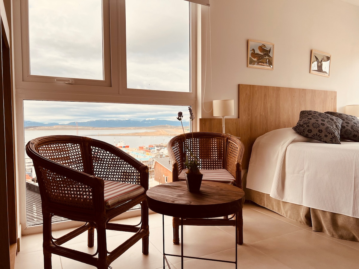 ¡Bienvenido a tu refugio en Ushuaia! Este acogedor estudio ubicado en el centro de Ushuaia ofrece impresionantes vistas del Canal Beagle directamente desde tu ventana. Comienza tu día con una taza de café mientras admiras el mítico lugar donde el Océano Pacífico se encuentra con el Océano Atlántico. Vive la belleza del fin del mundo disfrutando todas las comodidades de un hogar.