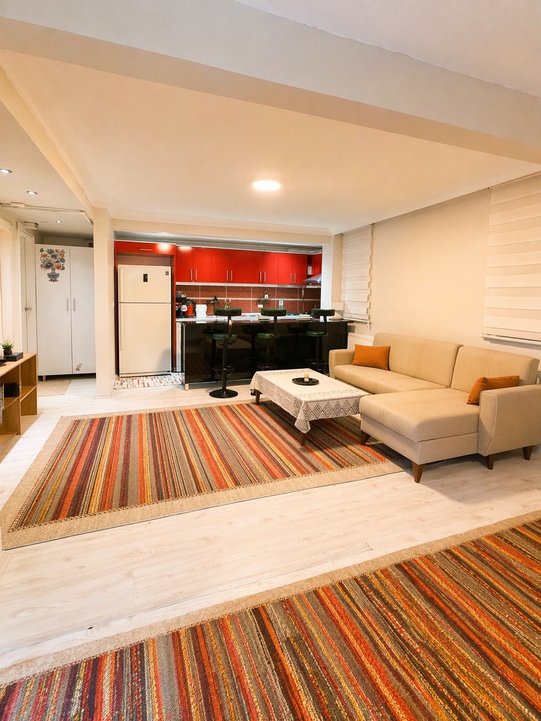There are 2 rooms in the house: 1 living room and 1 bedroom. You can easily access everything as a whole group from this centrally located place. It is 3 minutes walking distance to public transportation vehicles such as metro, metrobus, and Marmaray. It is a 10-minute walk to the sea. With 65inc smart tv and 200mbit internet infrastructure, you can do your work in the working area, and you can do your daily sports in the sports area. You can prepare your own food with kitchen equipment.