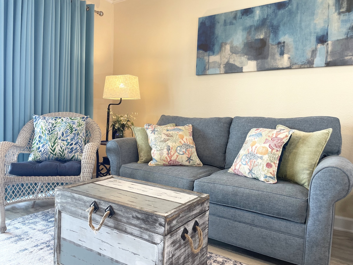 Enjoy our comforting and relaxing completely remodeled modern farmhouse. Nearby you’ll find restaurants, bars, parks, museums, galleries, event center, marina, and the downtown beach with promenade. Great views of birds from the patio. New appliances, modern spa bathroom, blackout curtains, 2 HD TVs, Roku/streaming services, USB ports, office space with fiber WiFi, and sleeper sofa. Private patio with outdoor hot/cold shower, glider swing, bistro set, grill, mist fan & herb/pollinator garden.