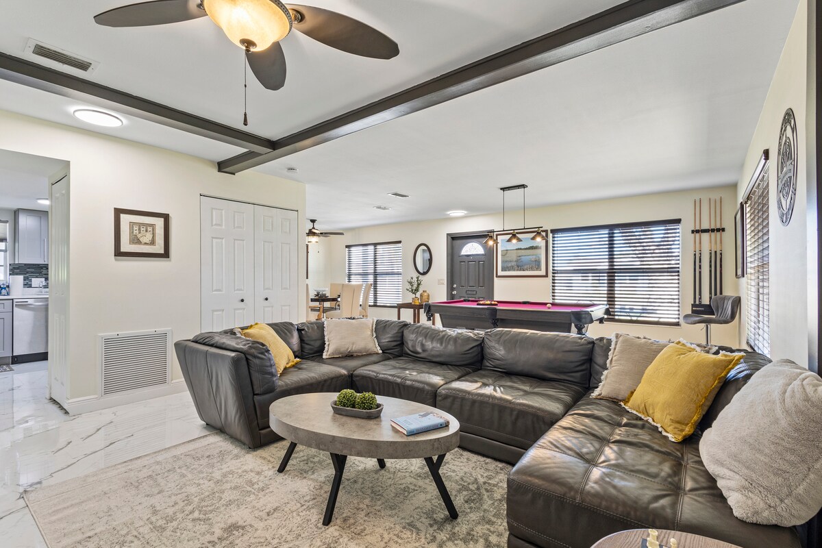 私人泳池房源和游戏室,距离海滩11分钟