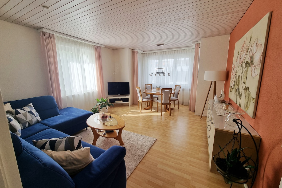Very beautiful, large and stylish 1.5 room apartment, quiet and sunny. Clean, tidy and with all modern amenities. Free parking in front of apartment. Steps away from nice forrest and amazing landscapes, couple of steps away from public transport. 20 minutes to city center and lake. Feel very welcome and enjoy the personal touch in this outstanding location!
