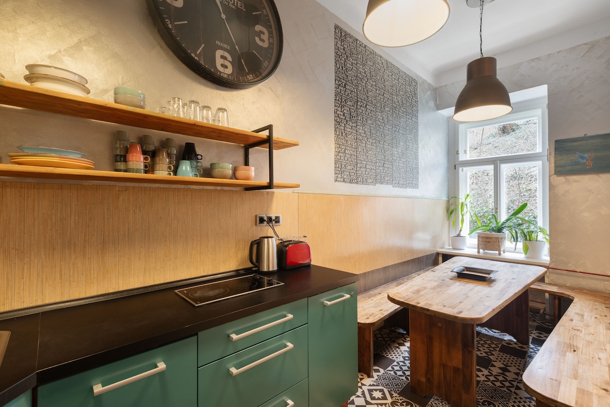 Make the most of your stay in Prague in our cozy 8-bed mixed dormitory with a shared bathroom. Your safety is our priority – all rooms are keycard-accessible, and each guest gets a personal locker for luggage storage. We provide fresh bed linen, towels, individual reading lamps, and easily accessible power sockets – all ready for you. And the best part? Enjoy FREE coffee and tea, available 24/7!