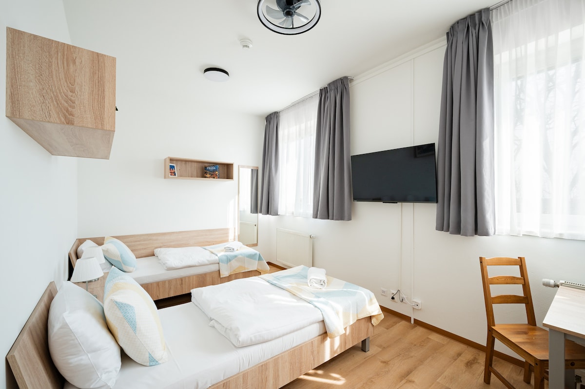 Explore the rich foodie culture of Karlin and its cool art spaces just steps away from our newly designed Karlin Square apartments. ➤ Hyper-responsive support ➤ 1-min walk from tram stop ➤ 5-min walk from Karlínské náměstí ➤ Smart TV with Netflix ➤ Fully-equipped kitchen ➤ Late check-out available until 1 p.m. Your home is close to Local Brewery Dva Kohouti, Kasarna Karlin, Central Bus Station Florenc, Cyril and Methodius Church, Karlinske Gardens, Stvanice Island, Vltava River.