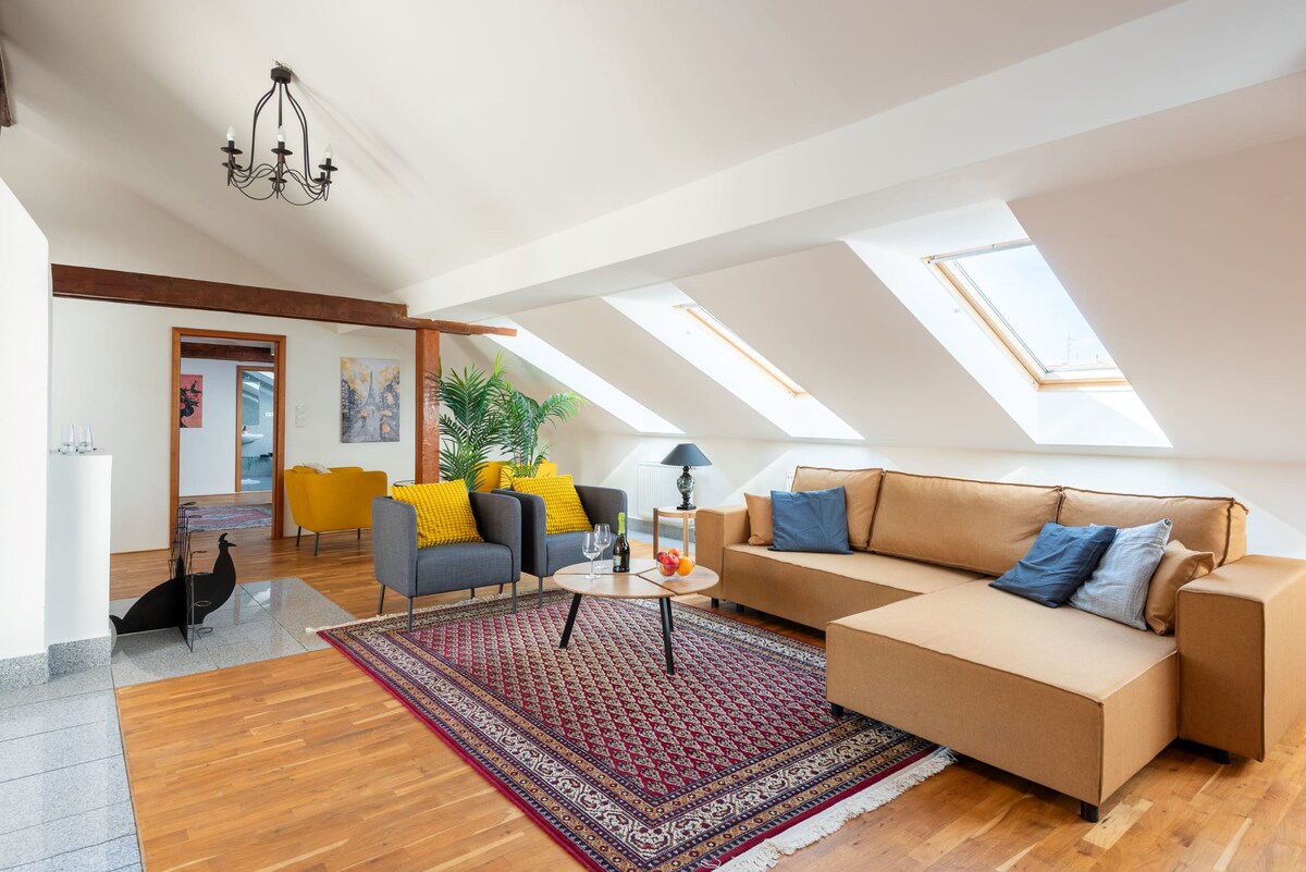 UNIQUE, SPACIOUS, PRIVATE, EXTREMELY CENTRAL apartment in historical center of Prague. Nestled in the historic heart of Old Town Prague, this stunning 3-bedroom apartment offers a unique blend of historical charm and modern luxury. **3 BEDROOMS**2 BATHROOMS**FULLY EQUIPPED KITCHEN**PRIVATE TERRACE** Ideal for families or groups, comfortably stay up to 9 people.