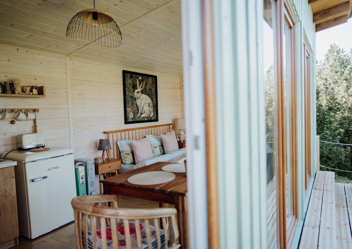 Unique design tiny house on wheels in the river canyon. We have designed it to create enough space for the moments together, romance for two, and relaxation by the river. The smell of wood, or a fireplace stove strive for contentment and the involvement of all the senses. French windows allow you to watch directly from the bed the river flow while sipping your favorite drink. Nearby is a bike path, nature reserve, walks with views of the Vltava canyon, or the oldest church in the Czech lands.