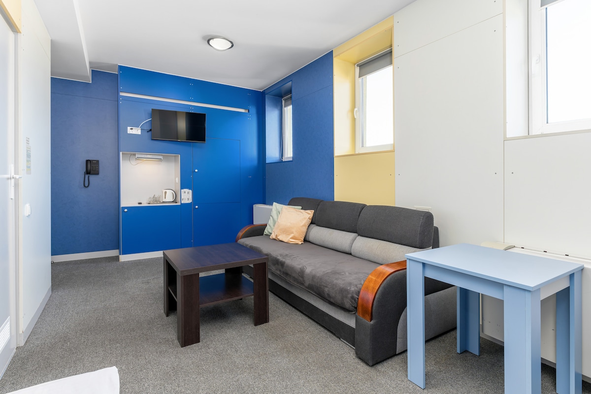 Komfortowy apartament w centrum miasta. Do dyspozycji całe mieszkanie 48 m - sypialnia z podwójnym łóżkiem oraz salon z aneksem kuchennym. W salonie rozkładana sofa . W pobliżu główne zabytki miasta. ( 400m ratusz miejski, 950 m - rynek starego miasta, zamek). Dostępne 1 bezpłatne miejsce na prywatnym zamykanym parkingu, tuz obok budynku. Ponadto w pobliżu również miejski parking (od godz.17 oraz w weekendy bezpłatny).