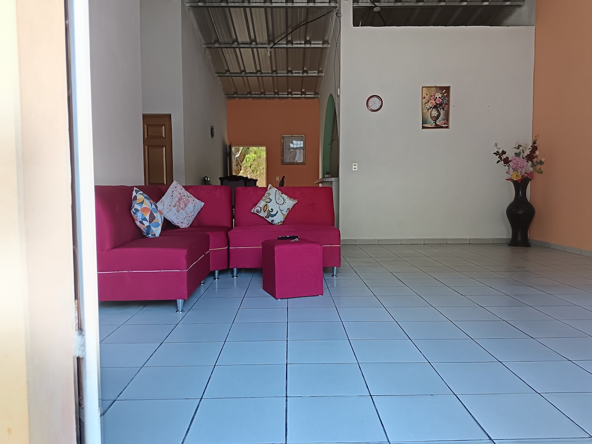 Casa grande familiar acogedora, con 3 dormitorios grandes con aire acondicionado, Piscina, con amplio jardín y estacionamiento para vehículos en playa Arcos del Espino, cerca de restaurantes, a 5 minutos de la playa y del Estero y la Bocana la Chepona a 10 minutos en carro.