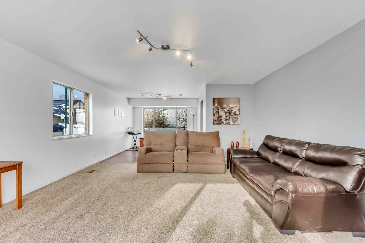 A Private entrance will invite you into your own two-bedroom basement suite. NO CLEANING FEES ***You must agree to our ALLERGY NOTICE to book*** Fall into a deep sleep with queen-size beds and newer furnishings throughout. The cozy living room is great to spread out and relax. Full kitchen and dining area. Enjoy Unlimited Hot water. Endless movies and shows are at your fingertips along with Super High-Speed Wifi. There is plenty of room to relax after a long day of traveling and playing.