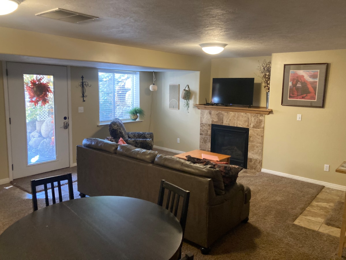 Welcome to our tranquil, Boho-style guest suite in charming Salem, Utah, the perfect peaceful escape from the hustle and bustle! This retreat offers a blend of charm and modern comfort, ideal for couples, families, or solo adventurers. Step into a cozy haven with a warm, inviting atmosphere. Relax in comfort: Unwind by the glowing gas fireplace while watching a movie on the large screen TV. Boho feel: The decor features a charming suite, offering a unique and memorable stay.