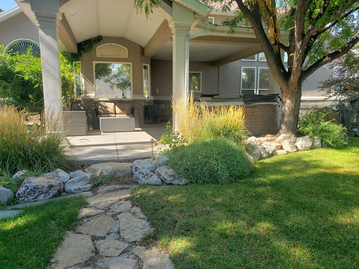 Forget your worries in this spacious and luxurious basement apartment close to everything. High end bedding, steam shower, 3 TV's, high speed WiFi, storage and room galore. Winter sports gear racks and a boot and glove dryer. A full gourmet kitchen, washer and dryer and warm fireplace with thermostat. Award winning garden landscape and covered patio to relax on in spring, summer & fall. Family friendly safe neighborhood. 4 seasons of luxury and memories. You will not want to leave!
