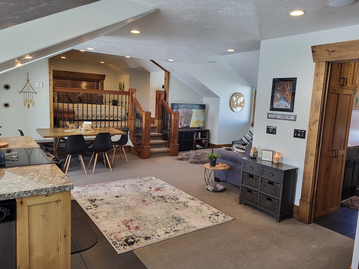 Escape to this private and spacious Loft above separate, heated RV garage on quiet, 4-acre estate. Nestled against the mountains near the center of this historic Swiss town. Stunning views in all directions. Outdoor adventures in close proximity: trails to hike, mtn bike/ATV rentals, beautiful golf courses and natural hot spring Crater. Park City & Sundance skiing minutes away! Amazing restaurants, bakery, coffee shops within a mile. You will fall in love with this charming, Mountain Village!
