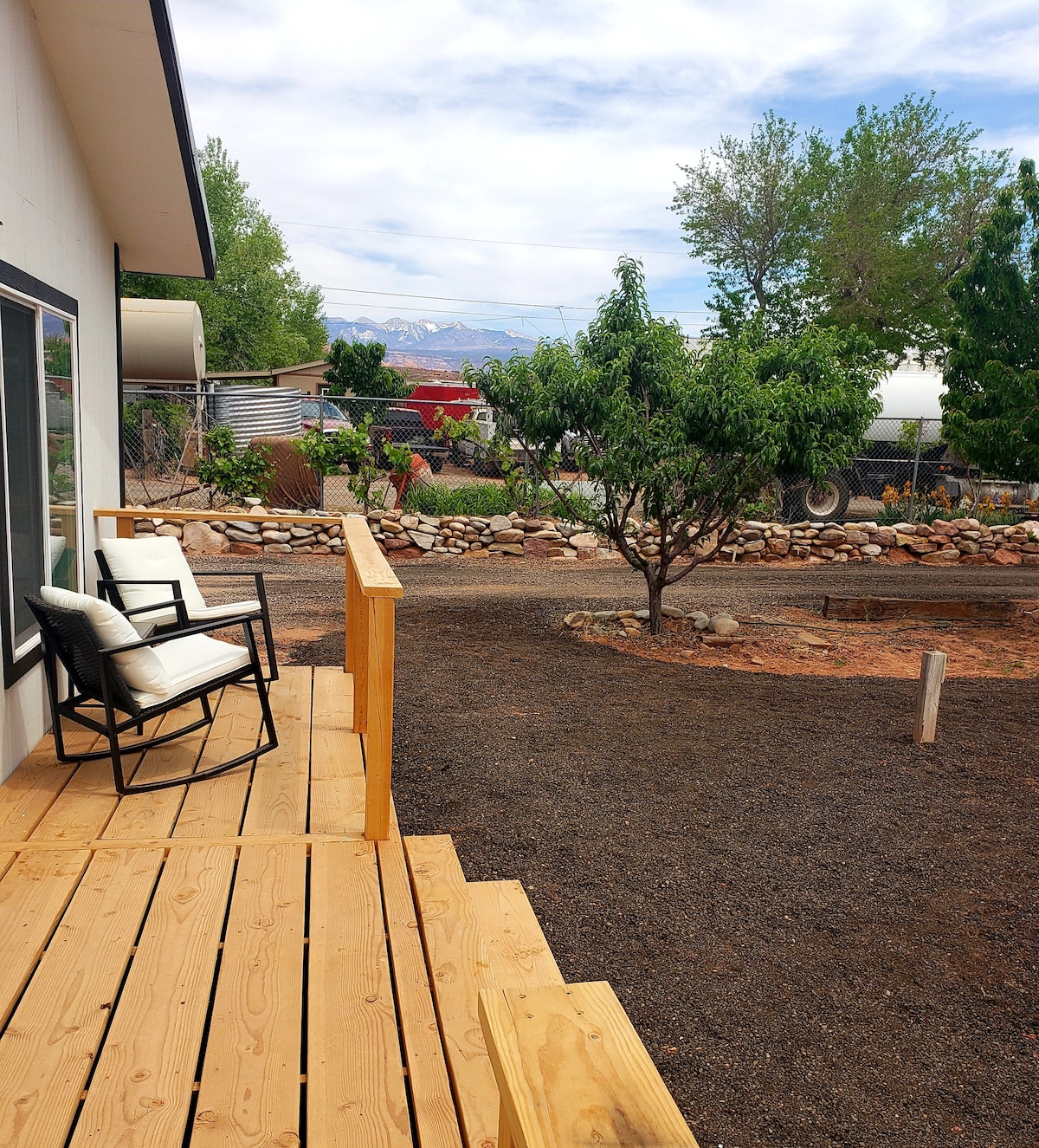 BEAUTIFUL PRIVATE SUITE, VERY SPACIOUS! Guest access to gym. Oliver House is situated at the end of a very small and private neighborhood within one mile of downtown Moab. Guests have private entrance into the suite. Personal wood deck area shared with unit 2, private bathroom, kitchenette, living area, and bed. Living room sofa folds into a futon bed, and so does matching chair (perfect for child or toddler). Very special place! Please see details!